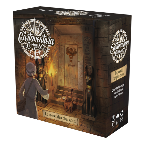 Chaque scénario de Cartaventura Odyssée se compose de trois chapitres d’environ vingt minutes chacun. Au fil de vos parties, vous dévoilerez des cartes secrètes qui débloqueront de nouvelles parties de l’histoire. En rejouant l’aventure, vous pourrez ainsi découvrir toutes les fins possibles. Pendant votre périple, vous débloquerez également les 10 cartes Savoir qui vous permettront d’apprendre l’histoire de l’Égypte antique tout en vous amusant.
