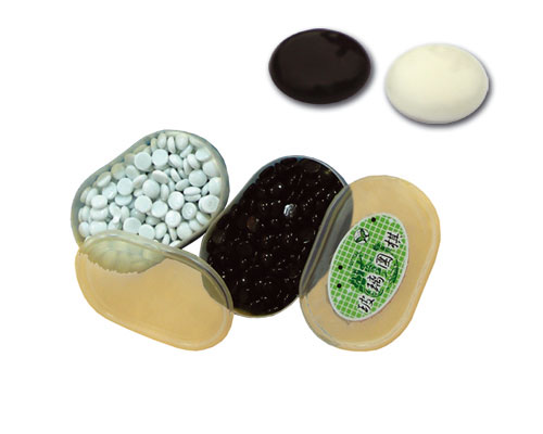 Pièces blanches et noires pour un jeu de Go. Voir la description complète