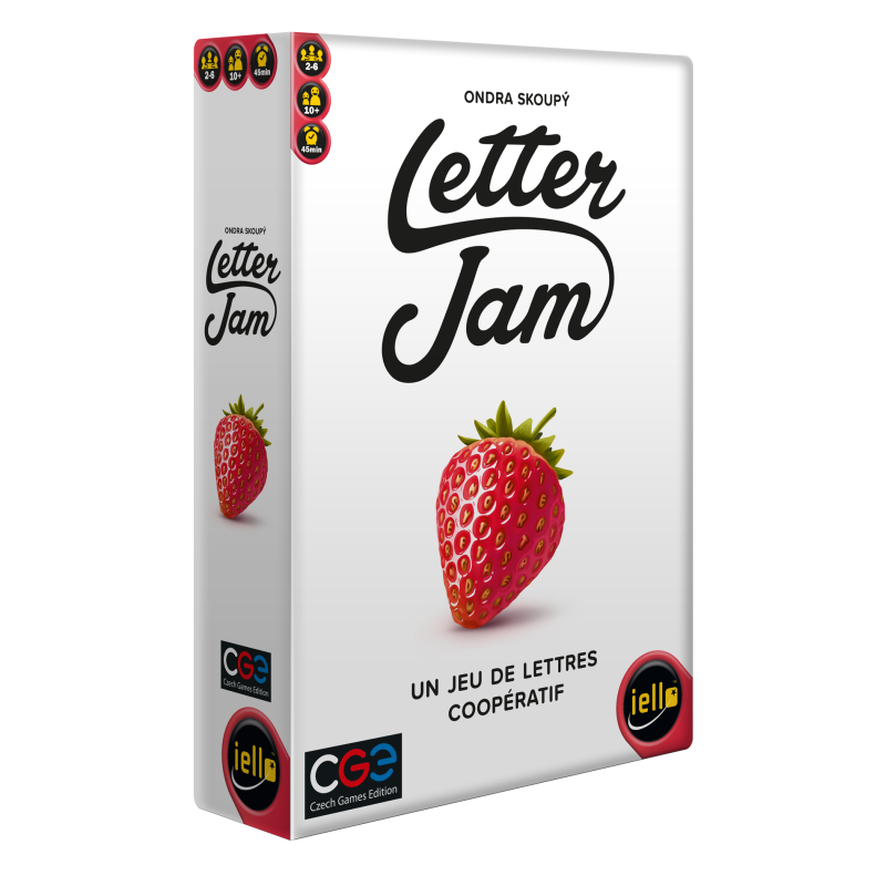 Avec Letter Jam découvrez un jeu de lettres particulièrement original dans lequel les joueurs s’entraident pour deviner quelles lettres sont placées face cachée devant eux… et ainsi constituer une liste de mots. Quelle est ma L_TTRE ? Devant chaque joueur est placée une lettre qu’il ne peut pas voir, tournée vers ses équipiers. Sur la carte, une lettre de l’alphabet. Personne ne peut savoir quelle est sa lettre, mais chacun peut voir les lettres de tous les autres joueurs. À chaque tour de jeu, après délibération, l’un des joueurs propose un mot formé avec le maximum de lettres détenues par les autres joueurs. Il place ensuite un jeton devant les joueurs pour lesquels il a utilisé une lettre, leur indiquant leur position dans le mot. Grâce à cet indice, chacun peut donc progressivement en déduire qu’elle est « sa » lettre, en prendre note, et placer une autre carte devant lui. À la fin de la partie, les joueurs réarrangent leurs lettres de telle façon à former un mot, et ainsi gagner la partie tous ensemble ! Un jeu de lettres très original ! Letter Jam mixe avec bonheur déduction et manipulation des lettres pour former un cocktail savoureux. Il faut en effet parvenir à trouver des mots qui vont permettre de donner le maximum d’indices aux coéquipiers, et donc qui impliquent le maximum de joueurs possible, afin que chacun puisse identifier les lettres qui lui permettront ensuite de former un mot. Inventivité, intuition et déduction seront donc de rigueur pour ce jeu aussi amusant qu’astucieux. Les joueurs seront heureux de deviner, de faire deviner, mais aussi de trouver des mots au moyen de leurs lettres cachées et (peut-être !) identifiées… Intense et fun : découvrez le plaisir du jeu de lettres d’une manière totalement inédite !