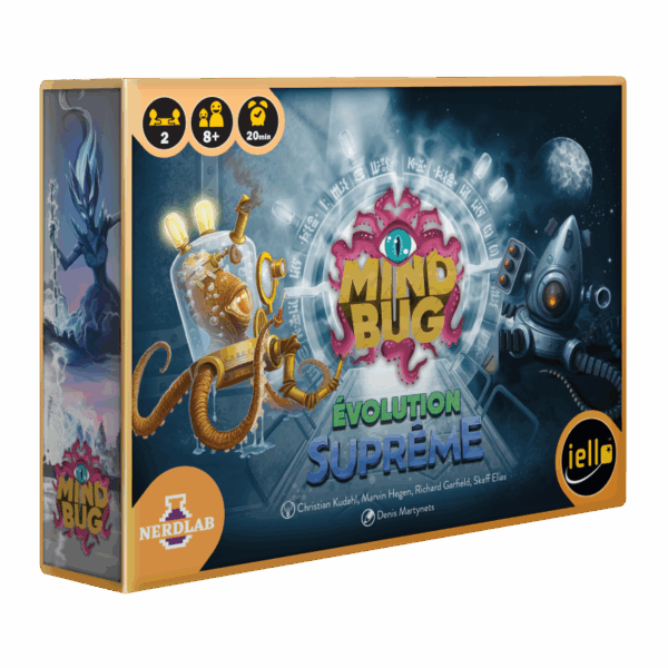 Dans « Évolution Suprême » de Mindbug, la mécanique spécifique « Évoluer » permet à vos créatures de passer à des niveaux supérieurs, renforçant ainsi leurs capacités et puissances. Les créatures évoluent à travers une lignée de trois niveaux, offrant des stratégies dynamiques et des interactions tactiques. Chaque évolution conserve l’état actuel de la créature tout en apportant de nouveaux avantages, ce qui ajoute une couche de profondeur stratégique à vos décisions en jeu.