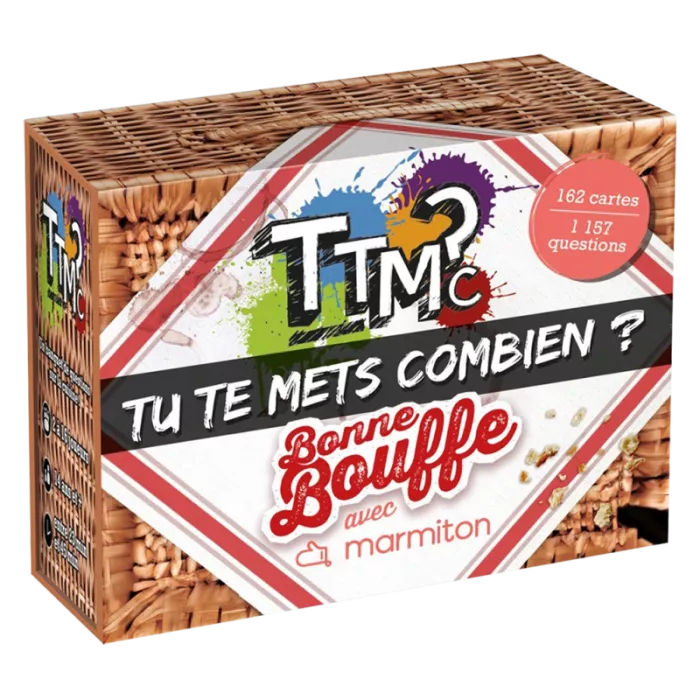 TTMC Bonne Bouffe avec Marmiton, variante de TTMC – Tu Te Mets Combien ? est un jeu d’ambiance où tu auto-évalues tes connaissances de 1 à 10 sur une multitude de sujets.